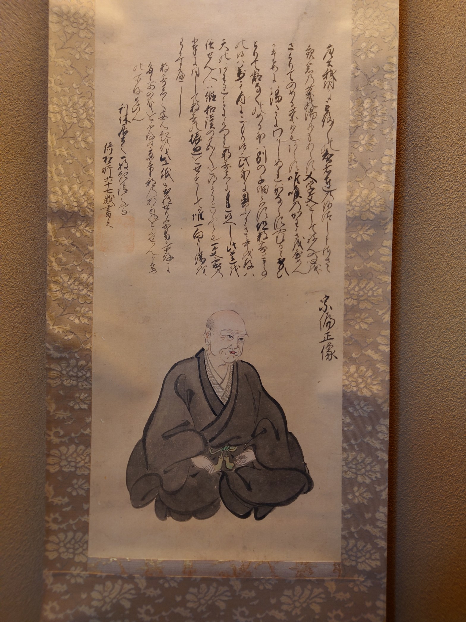 本日は旧暦の4月2日、流祖山田宗徧312回遠忌です。床に倚松軒帰誉の流祖像を掛け、流祖を偲びました。