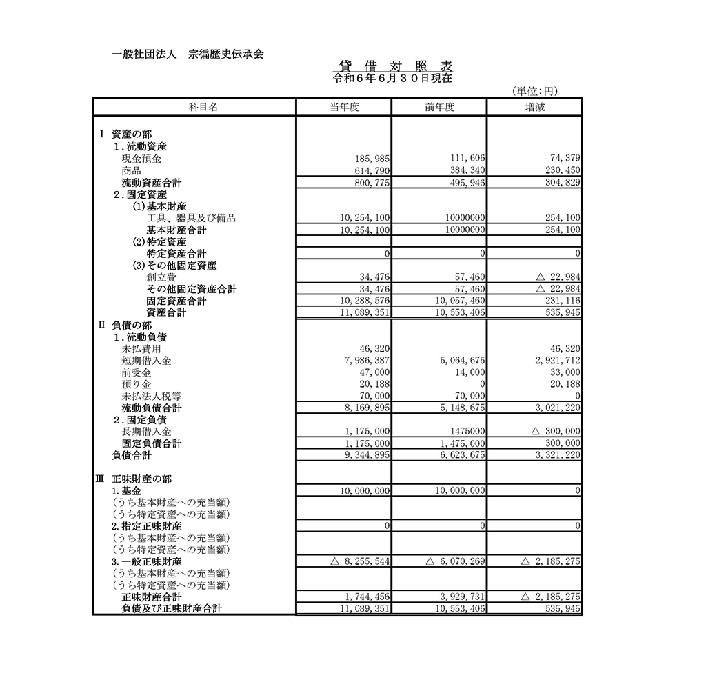 決算報告 一般社団法人宗徧歴史伝承会の決算報告をご案内しております。 令和7年6月30日現在 こちらをクリックするとPDFが開きます 過去の決算報告はこちら 令和3年6月30日現在 こちらをクリックするとPDFが開きます 令和4年6月30日現在 こちらをクリックするとPDFが開きます 令和5年6月30日現在 こちらをクリックするとPDFが開きます 令和6年6月30日現在 こちらをクリックするとPDFが開きます 共有: X で共有 (新しいウィンドウで開きます) X Facebook で共有 (新しいウィンドウで開きます) Facebook いいね 読み込み中…